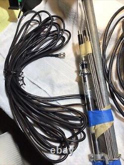 The product is a Telewave wideband antenna designed for ham and amateur radio use. It operates within a frequency range of 10-1000 MHz and includes a 2-way receiver power splitter. This Diamond brand antenna is ideal for enhancing radio communication capabilities across a broad spectrum of frequencies. These items were bought by me and never used as landlord would not allow me to use, only wrapped in tape and stored in closet since. 4 ICOM AH 7000 super wideband omnidirectional antenna. 5 telewave 10- 1000 MHz 2 way receiver power splitter, 500 N- Female connector.